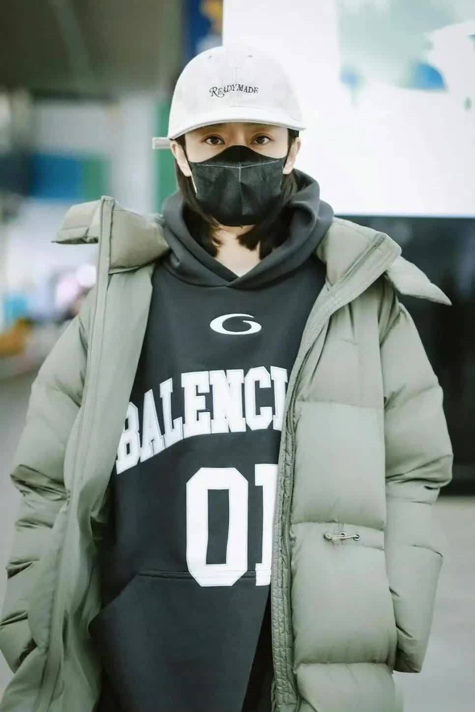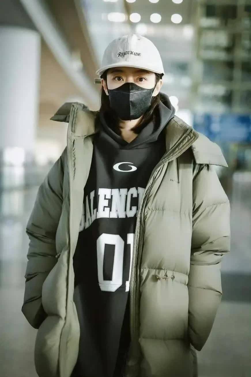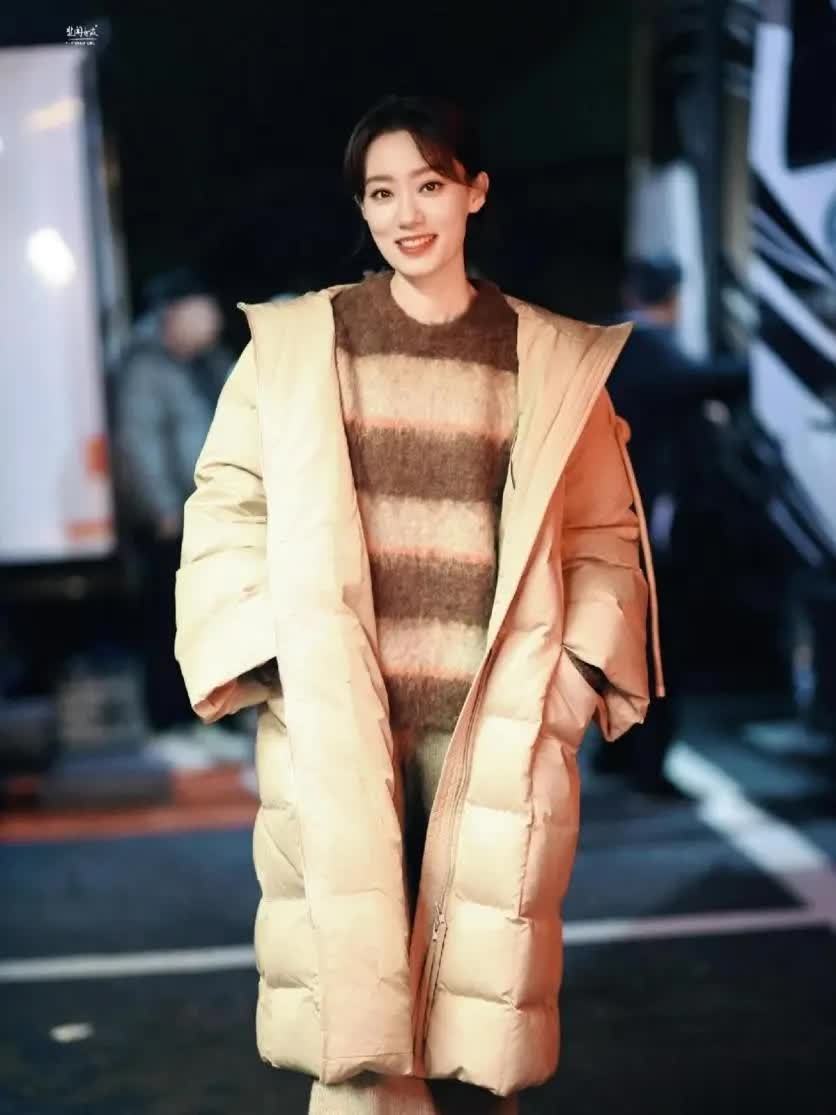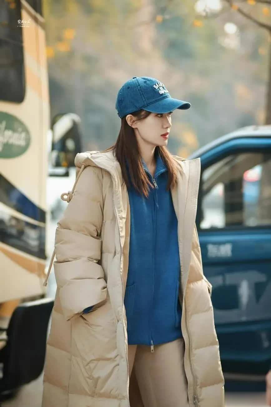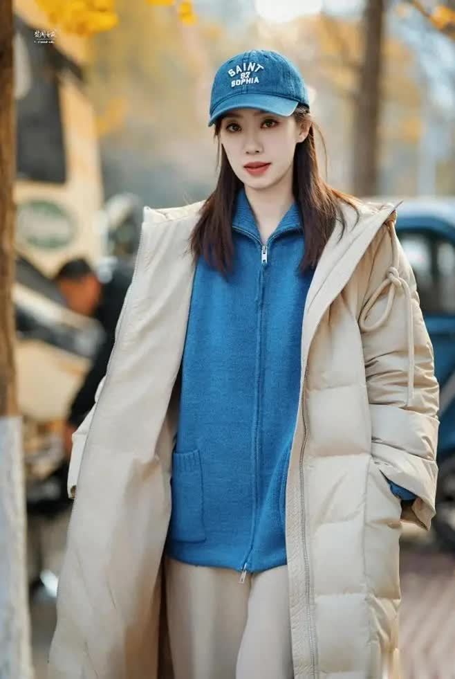 时髦精穿羽绒服时,内搭常选毛衣、打底衫或外套。张小斐搭蓝色外套,纯色面料视觉上不缭乱。蓝外套宽松,里面可加其他单品,不管是否加绒都能当外搭。