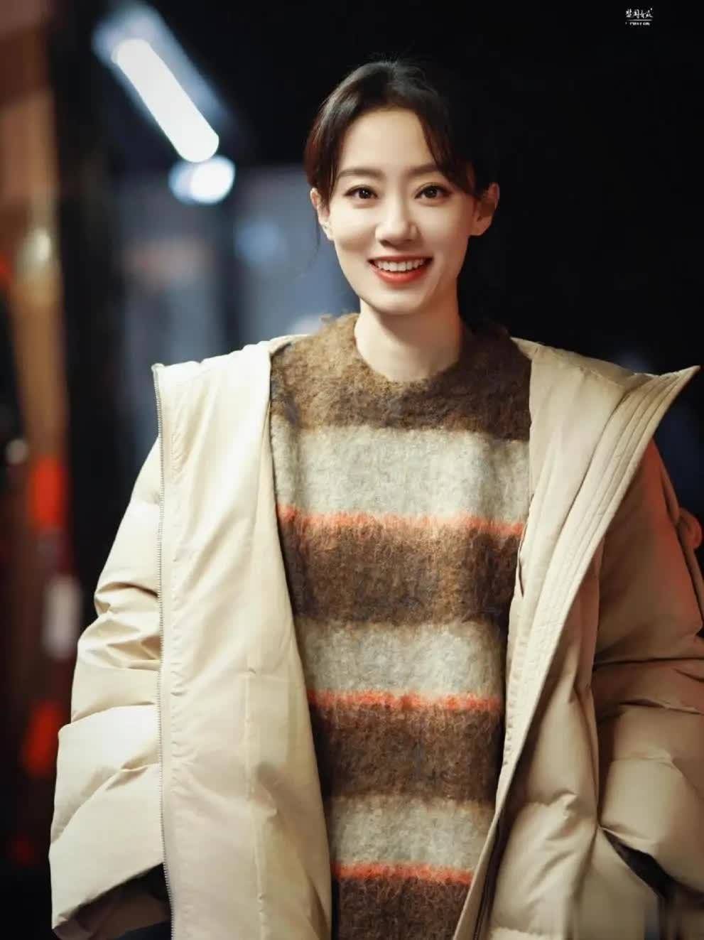 选长款羽绒服别太宽松,张小斐的毛衣颜色均匀耐看,领口小但选毛衣时领口也重要。